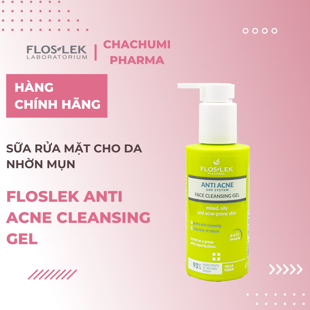 Floslek Anti Acne Bacterial Face Cleansing Gel - Sữa Rửa Mặt Cho Da Nhờn Mụn 200ml 125ml