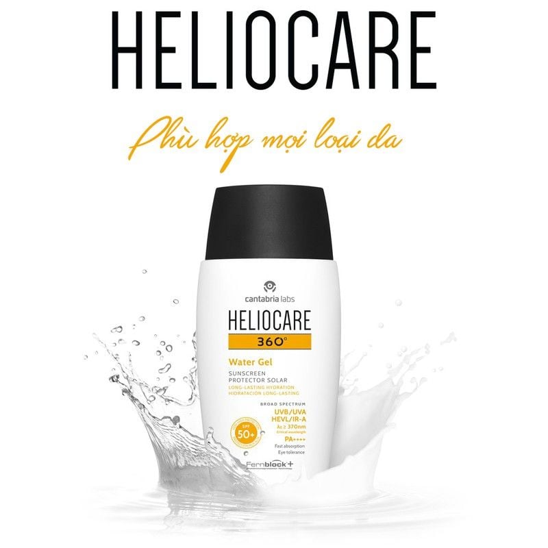 1. Heliocare 360 Water Gel SPF 50 là kem chống nắng dạng gel không dầu, không màu, có khả năng bảo vệ da toàn diện trước tác hại của UVA, UVB, HEVis và IR-A.