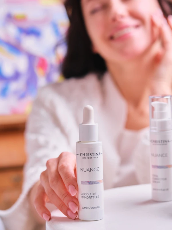Christina Nuance Absolute Immortelle là serum trẻ hóa chuyên sâu ứng dụng chiết xuất hoa bất tử (Immortelle), giúp phục hồi làn da lão hóa, cải thiện nếp nhăn và tăng độ săn chắc. Công thức giàu hoạt chất chống oxy hóa hỗ trợ tái tạo da, mang lại vẻ ngoài tươi trẻ, rạng rỡ và mịn màng hơn theo thời gian. Sản phẩm phù hợp cho làn da bắt đầu xuất hiện dấu hiệu tuổi tác hoặc cần phục hồi chuyên sâu.