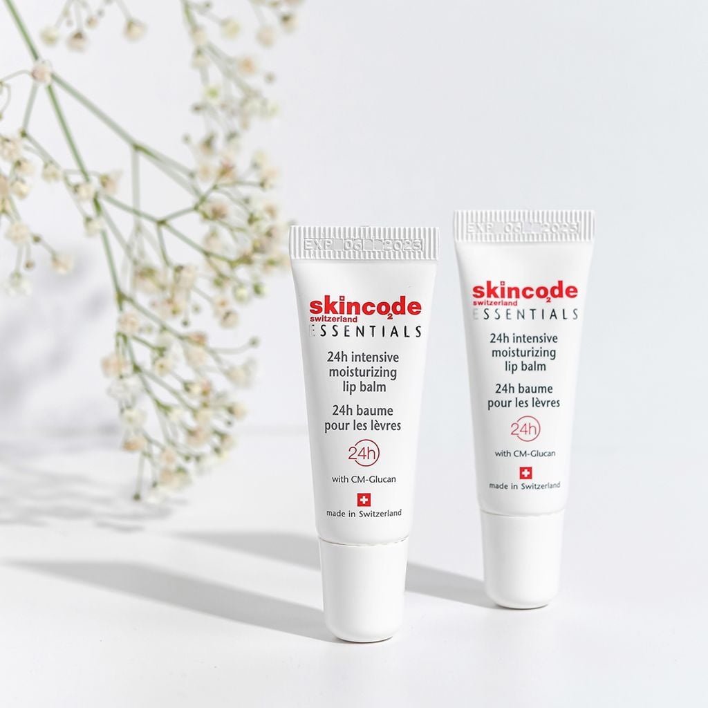 Skincode 24h Intensive Lip Balm chứa các phức hợp Hydrating Complex, Shea Butter, Pro Vitamin B5. Đặc biệt là công nghệ độc quyền được cấp bằng sáng chế y tế CM-Glucan. Mang đến công hiệu phục hồi tế bào môi từ sâu bên trong, giúp vết thương mau lành, bảo vệ làn môi mỏng manh trước các tác động xấu từ môi trường, tránh viêm nhiễm sau phun xăm môi. Mang đến cho bạn đôi môi căng bóng, khỏe mạnh. Đồng thời, son dưỡng còn thúc đẩy quá trình lưu thông máu, ngăn ngừa tối ưu tình trạng thâm môi, loang màu, nhạt màu, giúp môi lên màu chuẩn đẹp như ý.